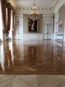 5. Ponçage et finition : une fois la pose terminée, le parquet est poncé pour enlever les éventuels défauts et pour le préparer à la finition. La finition peut être en vernis, huile ou lasure.